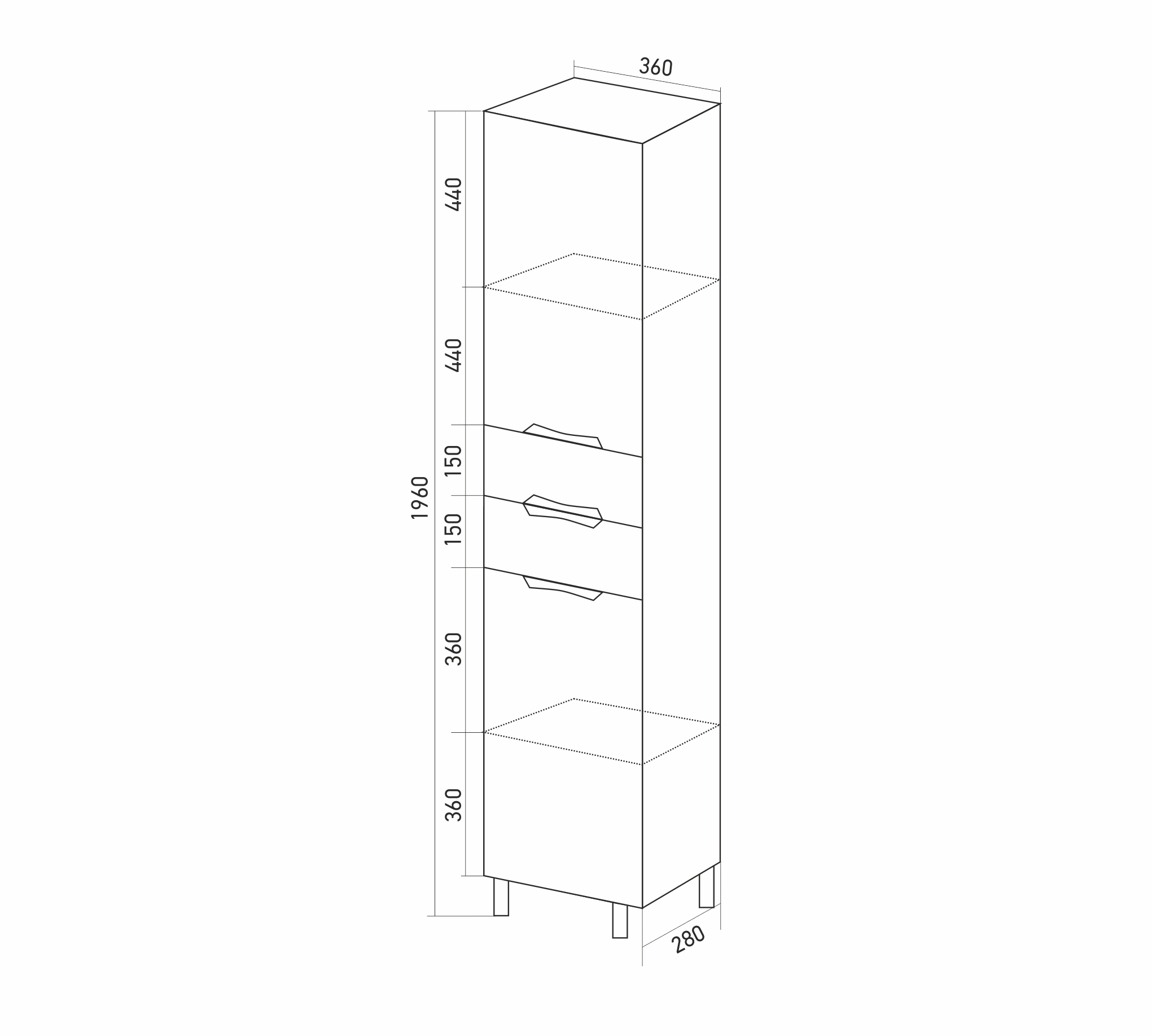 Пенал "Этьен-36" правый (2 ящика, 2 створки) (360*1960*296) (ПВХ)