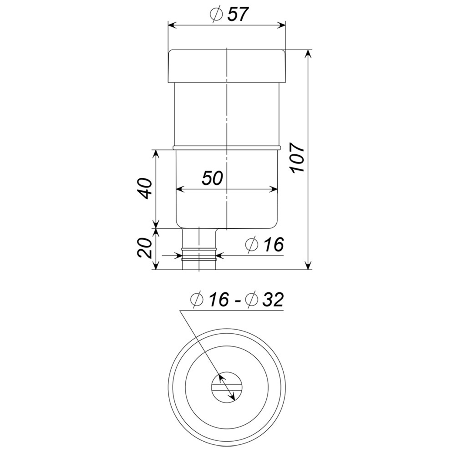 Монтаж сифона осуществляется либо непосредственно в раструб канализационной трубы DN50, либо с помощью трубки подходящего диаметра, к выходному патрубку D16 мм.