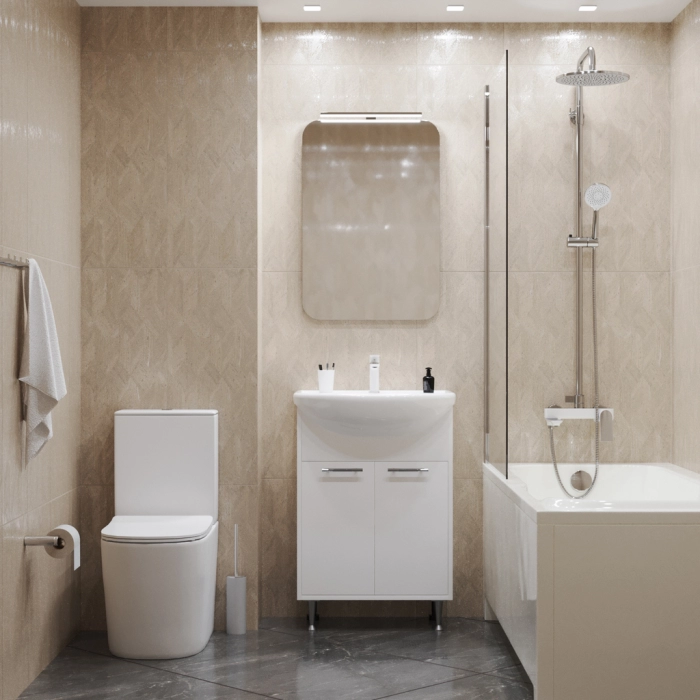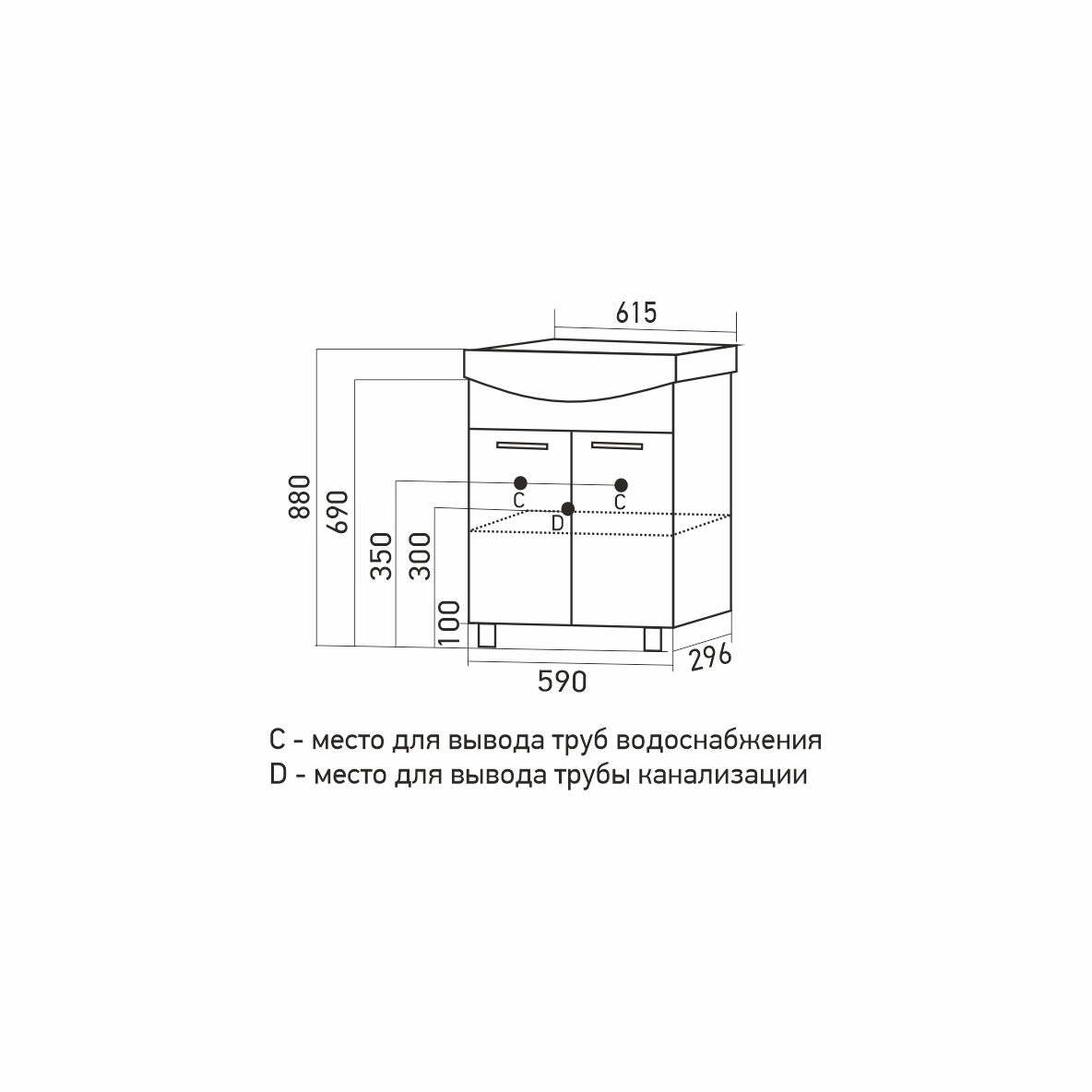 Размеры указаны для готового изделия в сборе с учетом раковины, тумбы и ножек.