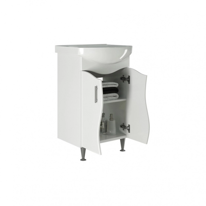 Размеры указаны для готового изделия в сборе с учетом раковины, тумбы и ножек.