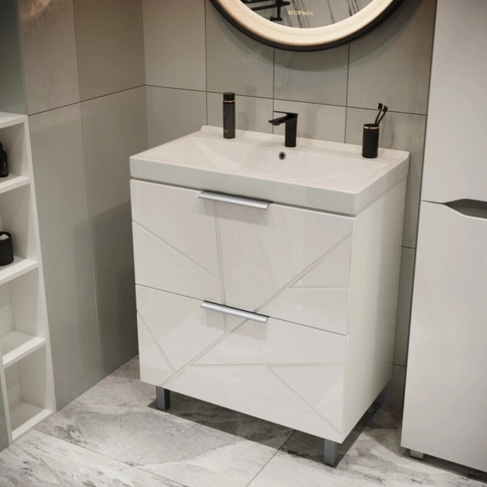 Мебель коллекции "Гранд" при этом практичная и функциональная. Система хранения позволяет удобно хранить средства гигиены, аксессуары и прочие необходимые вещи.