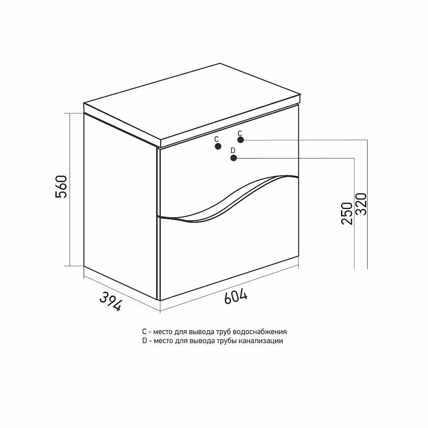 Размеры указаны для готового изделия в сборе с учетом раковины и тумбы.