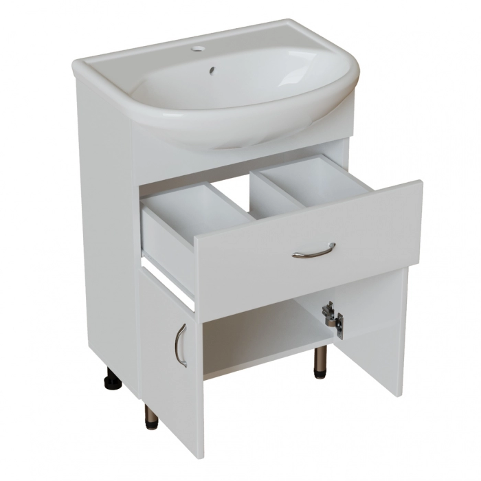 Размеры указаны для готового изделия в сборе с учетом раковины, тумбы и ножек.