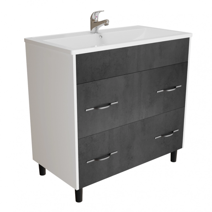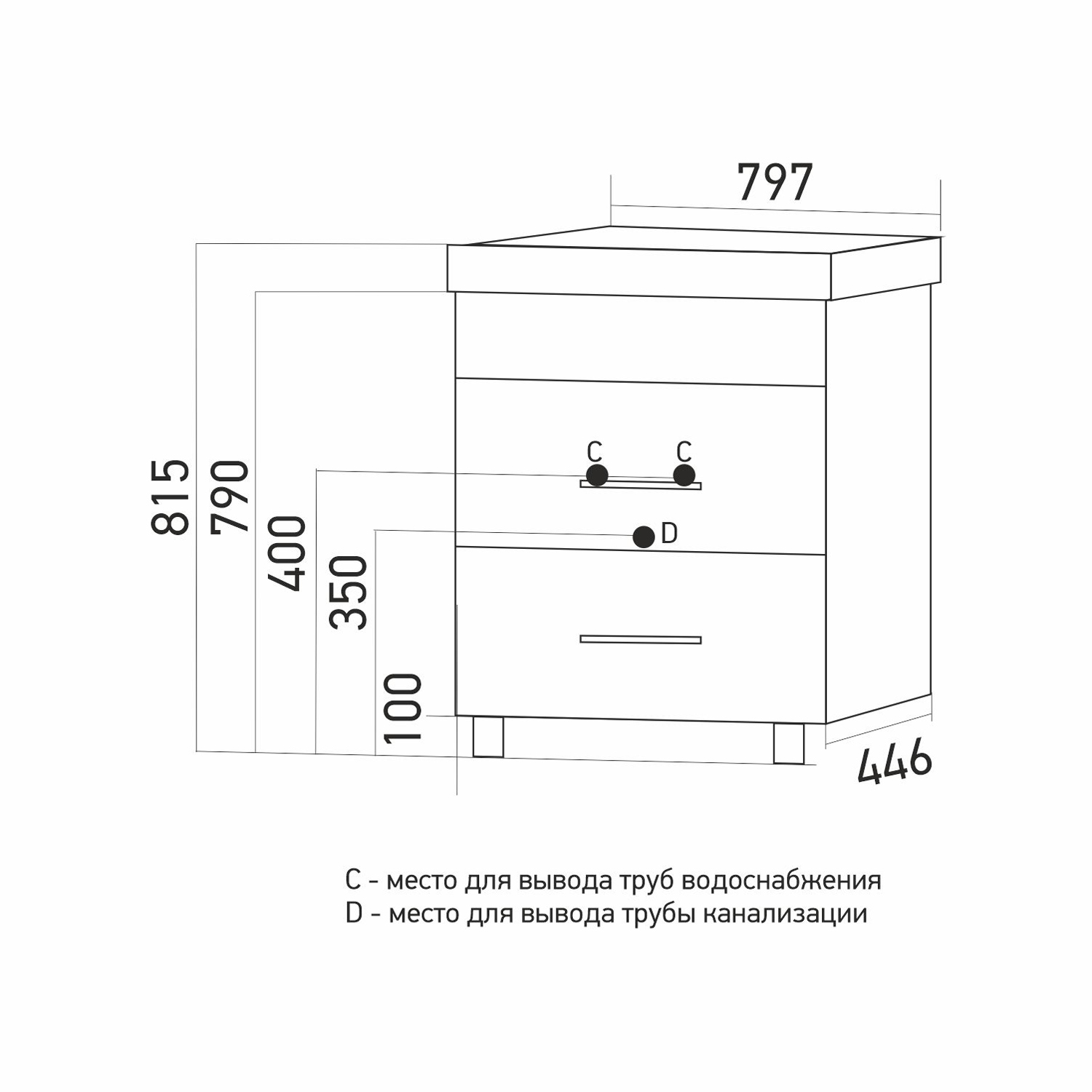 Размеры указаны для готового изделия в сборе с учетом раковины, тумбы и ножек.