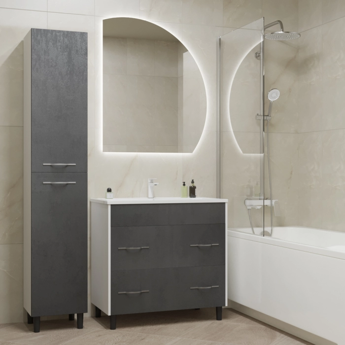 Коллекция "СУРА" выполнена в самом стильном и востребованном цвете - в оттенке "графит". Вся мебель выполнена из качественных материалов и укомплектована современными механизмами и фурнитурой. Коллекция "СУРА" создаст в ванной комнате атмосферу умиротворения и спокойствия.